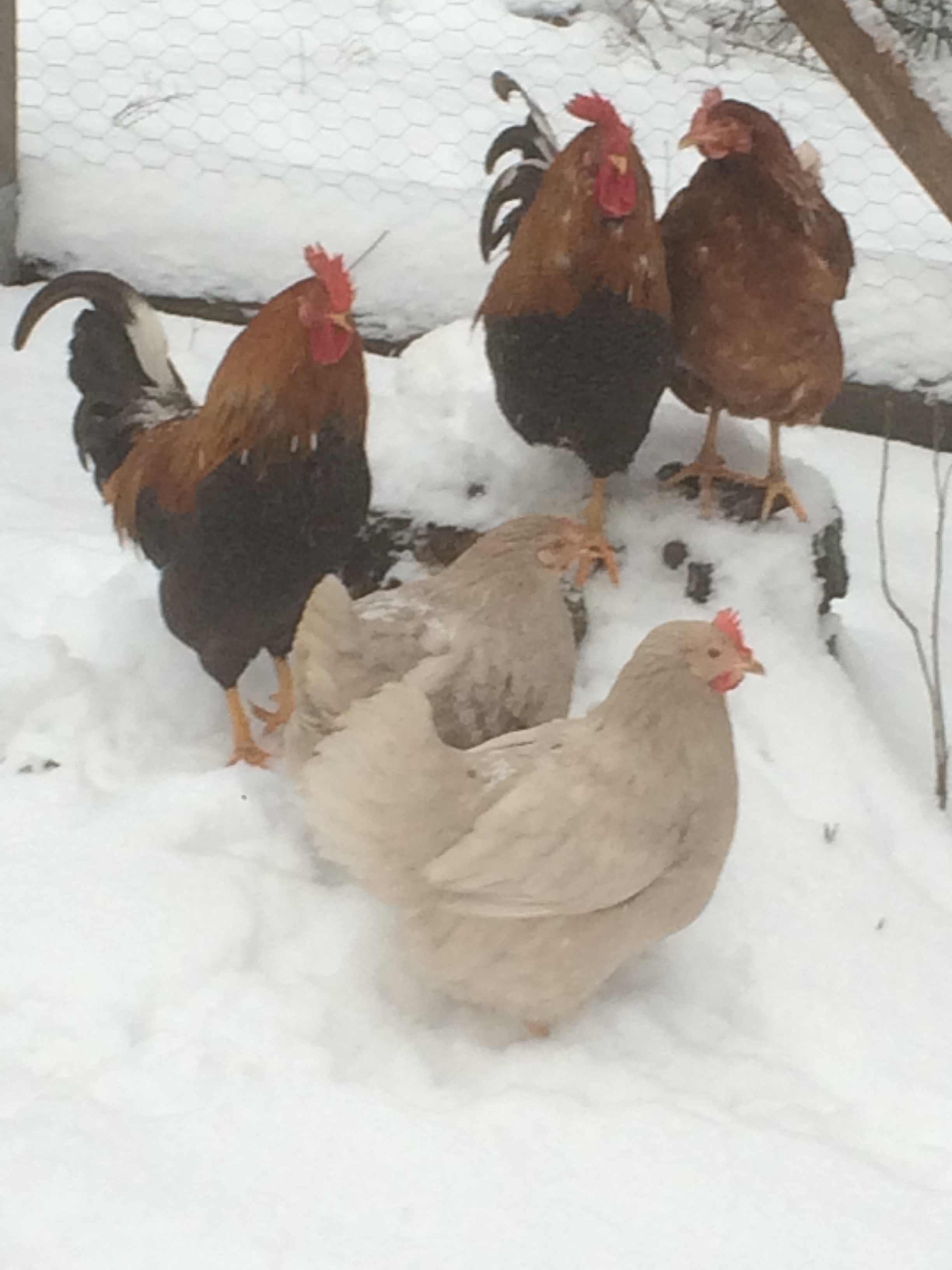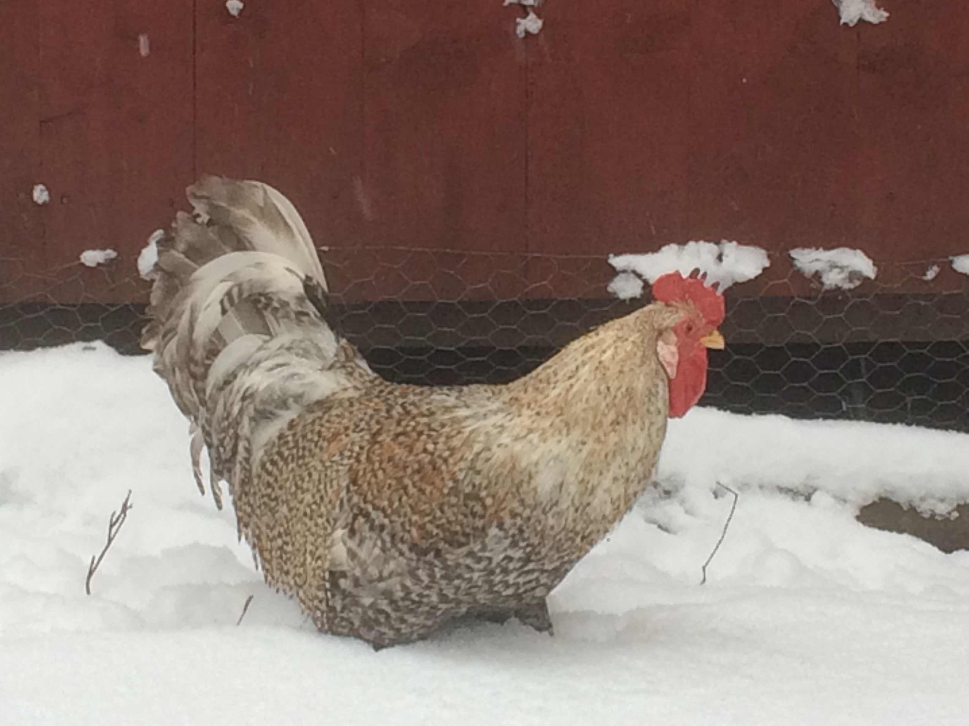 Efter att ha varit inomhus den senaste tiden var det dags att äntligen få komma lite ut. -4 grader och ny snö att springa runt i. Det var livat i hönsgården idag!