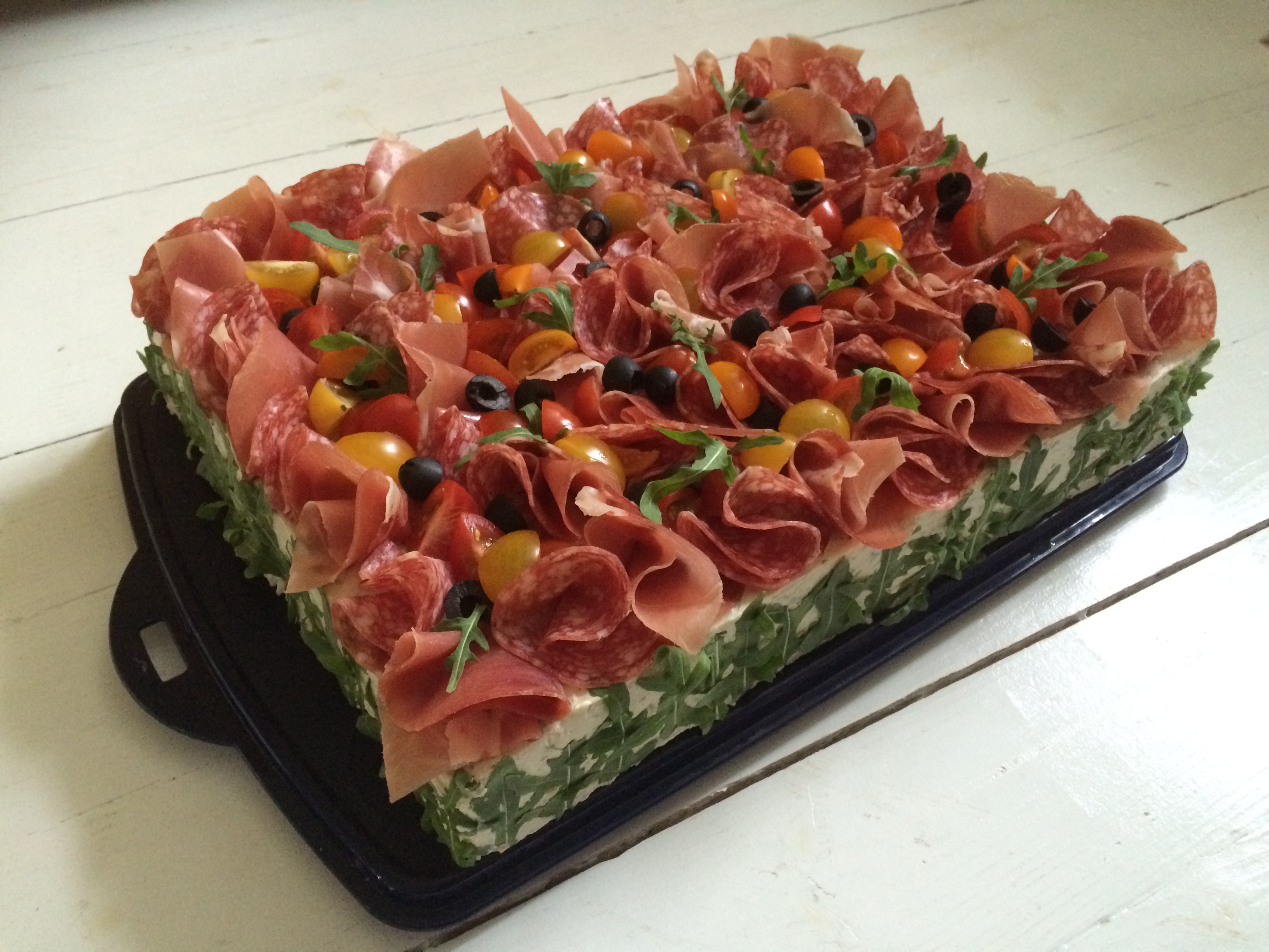 Min pojke firade sin 14.de födelsedag idag och bjöd på denna ”standardtårta” med skinka. Receptet fick jag av min ‘svärmor’ och var den första smörgåstårta jag gjorde. Den har hängt med under årens lopp och hör fortfarande till favoriterna som går hem hos både yngre och äldre släktingar.