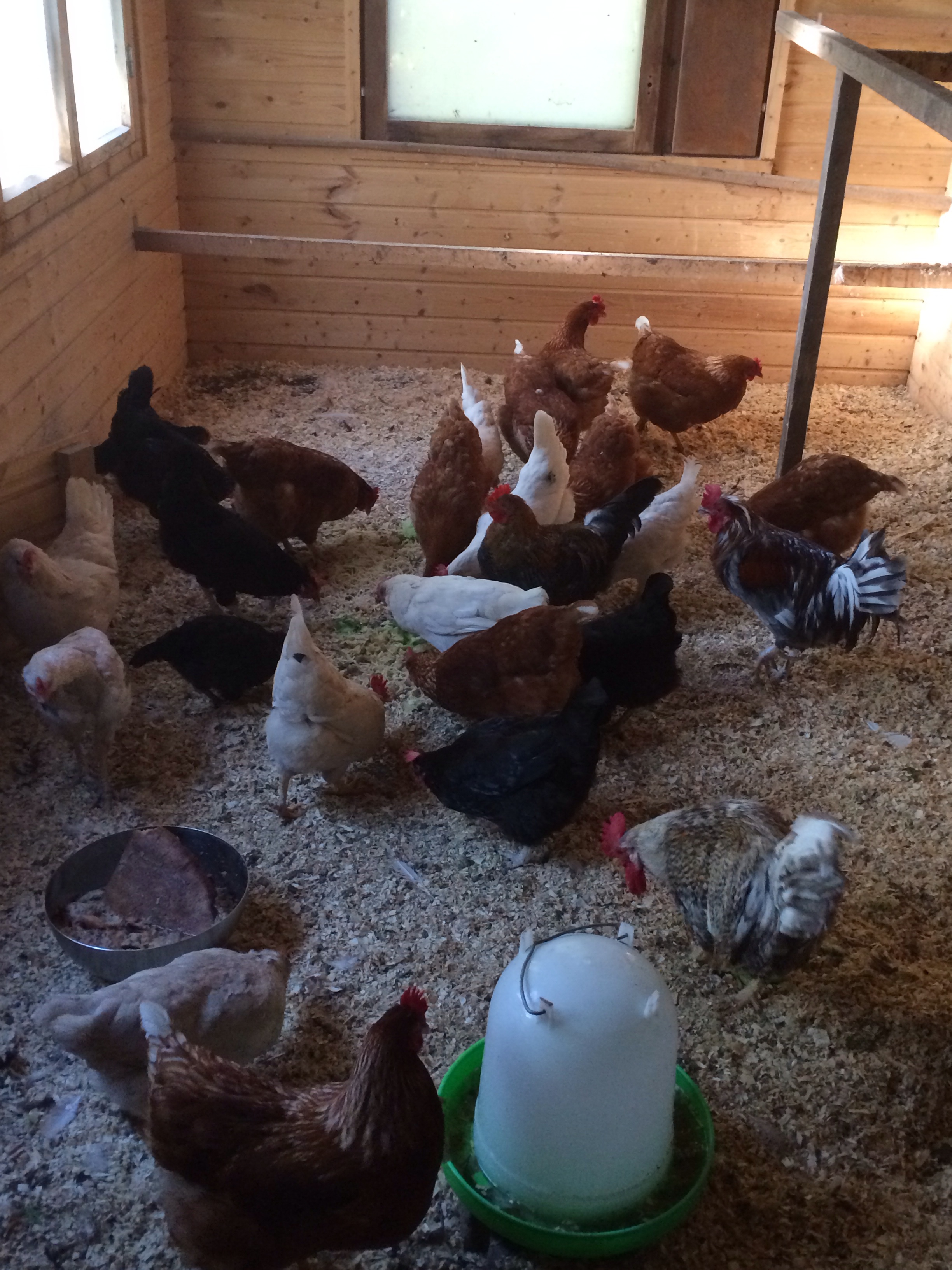 För tillfället har vi 35 hönor samt 2 tuppar.